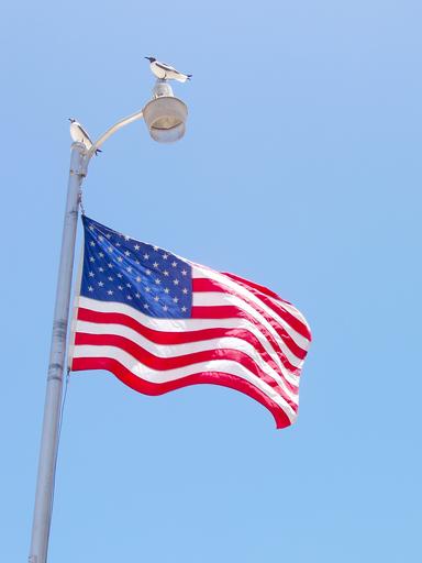 Keywords: usa flag american national wind america outdoor patriotic pole red flagpole birds sea gull blue blue sky