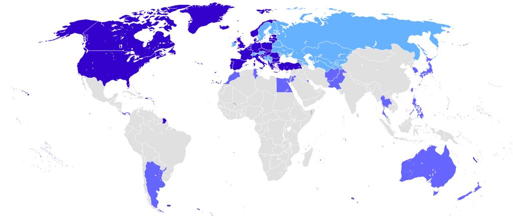 Keywords: USA military relations 2007.png legend 3300CC NATO member states including their colonies and overseas possessions Compacts of Free Association 6666FF Major non-NATO allies plus Taiwan and Special Case Panama 66B2FF Signatories of Partnership for Peace with NATO Military allies of the United States own 2007-08-02 Sesmith Military maps of the world 2007 maps deuteranomaly The colour for signatories of Partnership for Peace with NATO does not seem very different from the base colour Samulili talk 11 27 7 July 2008 UTC tritanopia I have a version of the map that has been corrected and passes simulated testing for deuteranopia protanopia and tritanopia And real life testing for red / green colour blidness I will upload shortly Bha9023 talk 19 19 27 August 2008 UTC