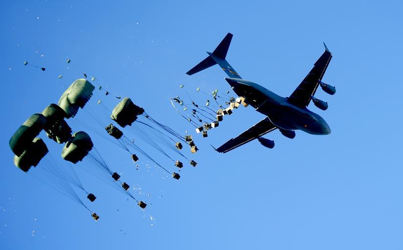 Keywords: USAF C-17 airdrops supplies for Haiti.jpg en U S Air Force C-17 Globemaster III from the 437th Air Wing Charleston Air Force Base S C airdrops pallets of water and food to Mirebalais Haiti Jan 21 2010 to be distributed by the members of the United Nations 2010-01-21 http //www flickr com/photos/usairforce/4293474325/in/photostream/ James L Harper Jr PD-USGov Uploaded with UploadWizard Airdropping from Boeing C-17 Globemaster III 437th Airlift Wing United States Air Force 2010 Haiti earthquake relief efforts United States Air Force in 2010 |