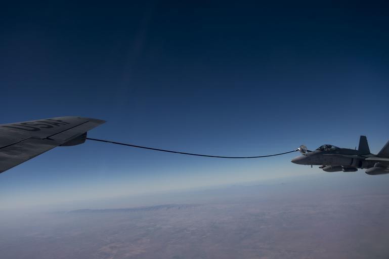 Keywords: USAF KC-135 Stratotanker refuels an Australian F-18 fighter over Iraq on 22 December 2015.jpg en A U S Air Force KC-135 Stratotanker refuels an Australian F-18 fighter over Iraq Dec 22 2015 Coalition forces fly daily missions in support of Operation Inherent Resolve 2015-12-21 19 00 00 https //www dvidshub net/image/2342874/340th-ears-refuels-british-and-aussie-fighters VoXw6Pl96Uk U S Air Force photo by Staff Sgt Corey Hook other versions PD-USGov Australian contribution to the military intervention against ISIL F/A-18 Hornet in the Royal Australian Air Force No 75 Squadron RAAF Uploaded with UploadWizard Aerial refueling 2015 in aviation in Iraq |