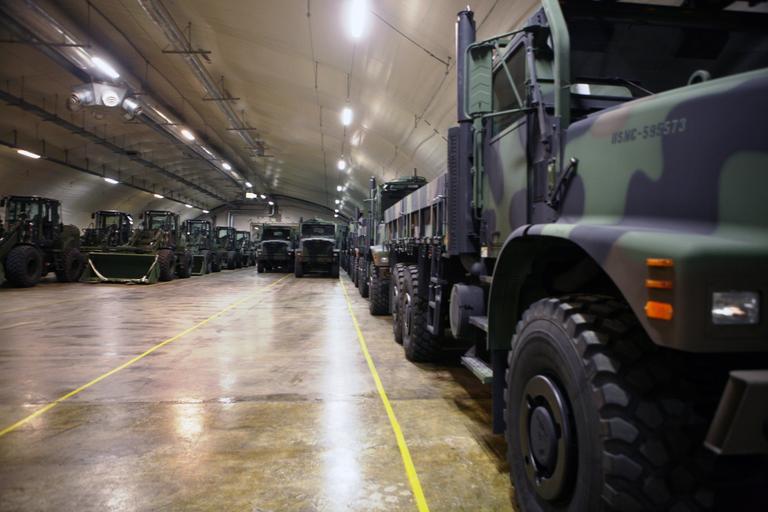 | Keywords: USMC trucks stored inside a cave in Norway.jpg  en Rows of front loaders and 7-ton trucks sit gassed up and ready to roll in one of the many corridors in the Frigard supply cave located on the Vaernes Garrison near Trondheim Norway This is one of seven caves that make up the Marine Corps Pre-positioning Program-Norway facility All the caves total more than 900 000 sq ft of storage space full of enough gear to outfit 13 000 Marines for up to 30 days 2012-01-06 19 31 33 http //www marforeur marines mil/News/News-Article-Display/Article/520943/www flickr com/people/marineforceseurope/ Unidentified Marine Forces Europe and Africa photographer other versions PD-USGov Vehicles of the United States Marine Corps Marine Corps Prepositioning Program-Norway |