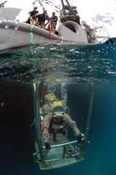 Keywords: USNS-Grasp-Diver-On-Stage.jpg en A diver rides a stage to the sea bed from MSC rescue and salvage ship USNS Grasp in St Kitts during Global Fleet Station 2008 Photo by MCCS Andrew McKaskle http //www msc navy mil/annualreport/2008/subcommands htm U S Navy MCCS Andrew McKaskle 100px PD-USGov-Military-Navy Aboard USNS Grasp T-ARS-51 Underwater photographs of surface supplied divers Saint Kitts and Nevis Over/under photographs Diving support vessels Diving stages |