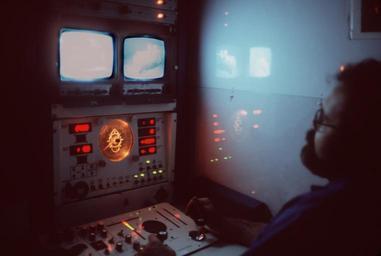 | Keywords: USNS Narragansett, 1984 KAL-007.JPEG A technician controls the movement of the unmanned submersible Deep Drone from a control panel in the fleet tug USNS Narragansett T-ATF 167 The submersible is being used to aid in the search for Korean Air Lines Flight 007 Photo from July 1984 All Hands Magazine http //www defenseimagery mil/; http //www defenseimagery mil/imagery html guid 7ff782107faa60e36bd135eea7b423c4665921d6 VIRIN DN-ST-85-08675 1984-07-01 PH1 Fel Barbante U S Navy PD-USGov-Military-Navy USNS Narragansett T-ATF-167 |