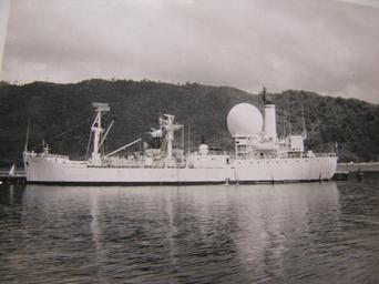 | Keywords: USNS Sword Knot (T-AGM-13) in Trinidad.jpg en USNS Sword Knot T-AGM-13 docked in Trinidad http //www flickr com/photos/28155983 N07/4432444961/in/photostream/ 1966 U S Navy/GM3 Wirth Public domain PD-USGov-Military-Navy USNS Sword Knot T-AGM-13 |