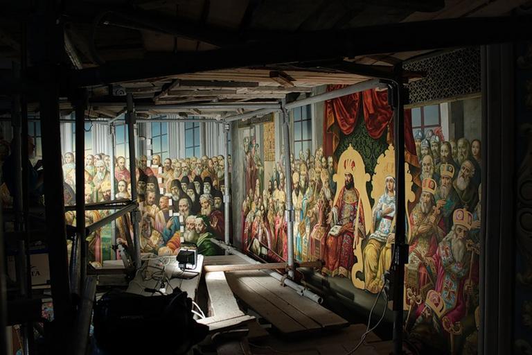| Keywords: Uspenskij1.jpg ru П оцесс восстановления Успенского собо а Киево пече ской Лав ы http //n-dl com/ own Andreevartstudio 2010 Инте вью с художником и фотомате иалы на сайте http //n-dl com/ Art in Dormition Cathedral of the Kyivan Cave Monastery Murals in Ukraine Interior of Dormition Cathedral of the Kyivan Cave Monastery |