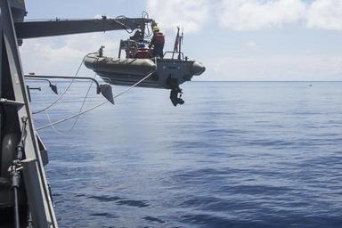 | Keywords: USS Anchorage operations 151104-N-GG858-002.jpg en 151104-N-GG858-002 INDIAN OCEAN Nov 4 2015 Sailors assigned to San Antonio-class amphibious transport dock ship USS Anchorage LPD 23 are lowered into the Indian Ocean by crane in an 11-meter rigid inflatable boat RIB to give aid to stranded Sri Lankan fishing vessel M/V Lakshan Lakshan became stranded because of engine problems flagging down Anchorage that had been passing by Anchorage rendered aid to the crew providing food and water M/V Beyanara was dispatched and arrived the following day to take over assistance of the Lakshan Anchorage is part of the Essex Amphibious Ready Group and with the embarked 15th Marine Expeditionary Unit 15th MEU is currently operating in the U S 7th Fleet area of responsibility U S Navy photo by Mass Communications Specialist 2nd Class Matthew Dickinson/Released Unit Navy Media Content Services DVIDS Tags NMCS; DVIDS Bulk Import 2015-11-05 Petty Officer 2nd Class Matthew Dickinson https //www dvidshub net/image/2271298/uss-anchorage-operations 151104-N-GG858-002 2015-11-06 03 14 USS ANCHORAGE INDIAN OCEAN PD-USGov-Military-Navy 15th Marine Expeditionary Unit USS Anchorage LPD-23 Images from DoD uploaded by Fæ |
