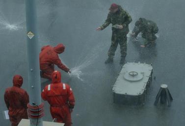 Keywords: USS Blue Ridge DVIDS276881.jpg en Sailors test the countermeasure wash down system aboard the U S 7th Fleet command ship USS Blue Ridge The countermeasure wash down system is used to defend the ship from a chemical biological or radiological weapons attack 2010-05-06 Petty Officer 3rd Class Daniel Viramontes https //www dvidshub net/image/276881 100506-N-+++++-243 2010-05-08 06 22 ABOARD USS BLUE RIDGE AT SEA PD-USGov-Military-Navy USS Blue Ridge LCC-19 Images from DoD uploaded by Fæ