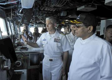 | Keywords: USS Blue Ridge hosts the Sri Lankan President in the pilot house. (26048374911).jpg COLOMBO Sri Lanka March 28 2016 Capt Kyle Higgins left commanding officer of the U S 7th Fleet flagship USS Blue Ridge LCC 19 gives a tour to Sri Lankan President Maithripala Sirisena in the pilot house Blue Ridge is conducting a scheduled port visit during its patrol of the U S 7th Fleet area of operations strengthening and fostering relationships in the Indo-Asia-Pacific region U S Navy photo by Mass Communication Specialist 3rd Class Liz Dunagan/Released 160328-N-XF387-086 Join the conversation http //www navy mil/viewGallery asp www navy mil/viewGallery asp http //www facebook com/USNavy www facebook com/USNavy http //www twitter com/USNavy www twitter com/USNavy http //navylive dodlive mil navylive dodlive mil http //pinterest com pinterest com https //plus google com plus google com https //www flickr com/photos/usnavy/26048374911/ USS Blue Ridge hosts the Sri Lankan President in the pilot house 2016-03-28 15 13 https //www flickr com/people/56594044 N06 Official U S Navy Page from United States of America MC3 Liz Dunagan/U S Navy Attribution License IPTC Caption-Abstract U S Navy photo PD-USGov-Military-Navy Official U S Navy Imagery https //flickr com/photos/56594044 N06/26048374911 2016-03-29 15 51 16 cc-by-2 0 Aboard USS Blue Ridge LCC-19 Kyle P Higgins Maithripala Sirisena Photographs taken on 2016-03-28 160328-N-XF387-086 Navy Files from the U S Navy Flickr stream |