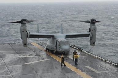 MAKE A MEME View Large Image Bonhomme Richard 140419-N-LM312-019.jpg en An MV-22 Osprey tiltrotor aircraft assigned to Marine Medium Tiltrotor Squadron VMM 265 Reinforced prepares to take off from the flight deck of the forward-deployed amphibious assault ship USS ...