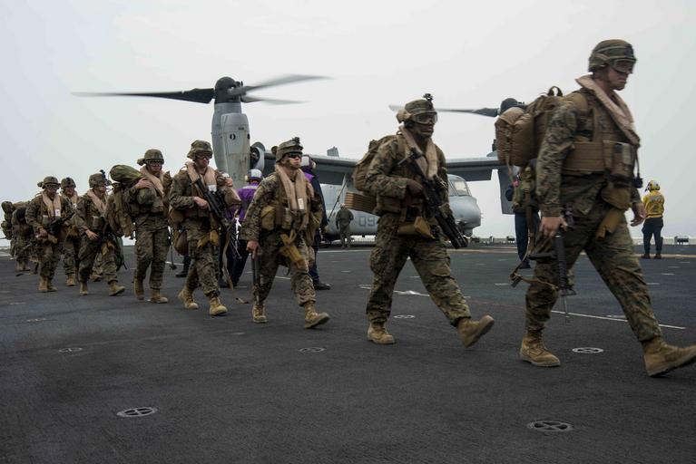 | Keywords: USS Bonhomme Richard flight deck operations 150331-N-RU971-035.jpg en 150331-N-RU971-035 WATERS TO THE EAST OF THE KOREAN PENINSULA An MV-22 Osprey tiltrotor aircraft offloads Marines assigned to the 31st Marine Expeditionary Unit returning from the Korean Marine Exchange Program on the flight deck of the forward-deployed amphibious assault ship USS Bonhomme Richard U S Sailors and Marines from the Bonhomme Richard Amphibious Ready Group and the 31st MEU are participating in the Korean Marine Exchange Program in the Republic of Korea with the ROK marine corps and navy The Bonhomme Richard ARG is comprised of the amphibious assault ship USS Bonhomme Richard the amphibious transport dock ship USS Green Bay the Whidbey-island class amphibious dock landing ship USS Ashland and the embarked 31st MEU 2015-03-31 March 31 2015 https //www dvidshub net/image/1847965 150331-N-RU971-035 2015-03-31 07 58 USS BONHOMME RICHARD WATERS TO THE EAST OF THE KOREAN PENINSULA AT SEA PD-USGov-Military-Navy MV-22B Osprey 31st Marine Expeditionary Unit USS Bonhomme Richard LHD-6 USS Green Bay LPD-20 Images from DoD uploaded by FĂŚ |