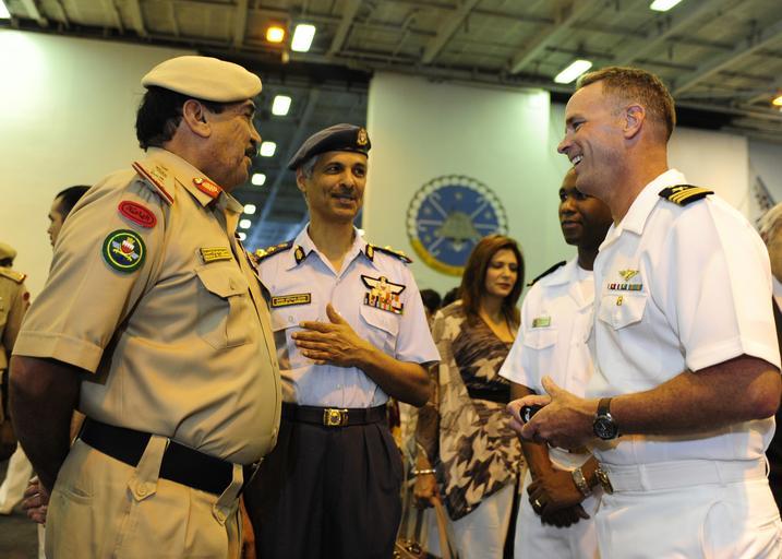| Keywords: USS Dwight D. Eisenhower on Deployment DVIDS173219.jpg en Cdr Mark Light and Ensign Jermaine Jemmott talk with Bahraini military officials during a reception aboard the aircraft carrier USS Dwight D Eisenhower during her historic port visit to the Kingdom of Bahrain The Eisenhower is the first nuclear-powered aircraft carrier to dock at the newly-completed Khalifa bin Salman Port The Eisenhower Carrier Strike Group is underway for a regularly scheduled deployment in support of the ongoing rotation of forward-deployed forces to support Operation Enduring Freedom maritime security operations and operate in international waters across the globe 2009-05-17 https //www dvidshub net/image/173219 090517-N-+++++-274 2009-05-20 04 52 USS DWIGHT D EISENHOWER AT SEA PD-USGov-Military-Navy Operation Enduring Freedom USS Dwight D Eisenhower CVN-69 Images from DoD uploaded by Fæ |