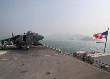 Keywords: USS Essex action DVIDS342509.jpg en An AV-8B Harrier jet aircraft is secured to the flight deck of the forward-deployed amphibious assault ship USS Essex as the ship arrives in Hong Kong Essex is part of the forward-deployed Essex Amphibious Ready Group and is making a port visit in Hong Kong 2010-11-16 U S Navy photo by Seaman Adam M Bennett https //www dvidshub net/image/342509 101116-N-+++++-048 2010-11-22 20 36 HONG KONG HK PD-USGov-Military-Navy McDonnell Douglas AV-8B Harrier II USS Essex LHD-2 Images from DoD uploaded by Fæ Images from US Navy location Hong Kong |