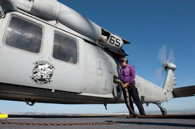| Keywords: USS Essex operations 150210-N-EV723-013.jpg en PACIFIC OCEAN Feb 10 2015 Aviation Boatswain's Mate Fuels Airman Edward Lovejoy refuels an MH-60S Sea Hawk helicopter assigned to the Blackjacks of Helicopter Sea Combat Squadron HSC 21 on the flight deck of Wasp-class amphibious assault ship USS Essex LHD 2 during an ammunition onload Essex is underway completing certifications in preparation for an upcoming deployment U S Navy photo by Mass Communication Specialist 2nd Class Christopher B Janik/Released 2015-02-10 Petty Officer 1st Class Jason Graham https //www dvidshub net/image/1769461 150210-N-EV723-013 2015-02-15 00 00 PACIFIC OCEAN USS ESSEX AT SEA PD-USGov-Military-Navy MH-60S Seahawk USS Essex LHD-2 Images from DoD uploaded by Fæ |