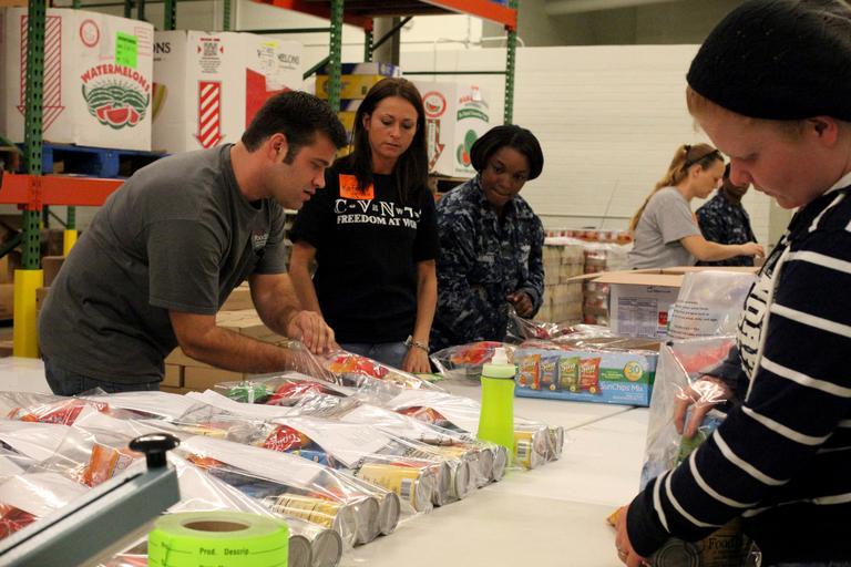 | Keywords: USS George H.W. Bush 120920-N-FE409-045.jpg en Miles Monroe left Backpack Program production coordinator demonstrates the correct order to package food items to U S Sailors assigned to the aircraft carrier USS George H W Bush CVN 77 at the Foodbank of Southeastern Virginia in Norfolk Va Sept 20 2012 The Sailors helped Foodbank employees package meals to be given to needy children at Hampton Roads schools for the students to take home on weekends U S Navy photo by Mass Communication Specialist 3rd Class Michael Smevog/Released 2012-09-20 Seaman Apprentice J Michael Smevog https //www dvidshub net/image/773456 120920-N-FE409-045 2012-11-03 23 51 NORFOLK VA US PD-USGov-Military-Navy USS George H W Bush CVN-77 Images from DoD uploaded by Fæ |