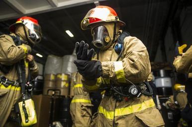 Keywords: USS George Washington operations 140828-N-IV489-149.jpg en Hull Technician 3rd Class Edouard Hollister from Slidell La center dons a fire fighting ensemble during an in-port emergency team drill aboard the U S Navy's forward-deployed aircraft carrier USS George Washington George Washington and its embarked air wing Carrier Air Wing 5 provide a combat-ready force that protects and defends the collective maritime interest of the U S and its allies and partners in the Indo-Asia-Pacific region 2014-08-28 CVN 73 https //www dvidshub net/image/1526369 140828-N-IV489-149 2014-08-28 03 08 YOKOSUKA JP PD-USGov-Military-Navy USS George Washington CVN-73 Images from DoD uploaded by Fæ |