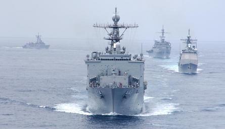 Keywords: USS Germantown 070918-N-RI884-052.jpg en The dock landing ship USS Germantown LSD 42 leads other ships assigned to the amphibious assault ship USS Tarawa LHA 1 's battle group during a strait transit exercise in the Pacific Ocean off the coast of southern California Sept 18 2007 Tarawa is participating in a composite unit training exercise with the 11th Marine Expeditionary Unit U S Navy photo by Mass Communication Specialist 3rd Class Daniel A Barker 2007-09-18 Petty Officer 2nd Class Daniel Barker https //www dvidshub net/image/604404 070918-N-RI884-052 2012-06-15 23 07 USS TARAWA LHA 1 USAFRICOM AT SEA PD-USGov-Military-Navy 11th Marine Expeditionary Unit USS Germantown LSD-42 Images from DoD uploaded by Fæ |