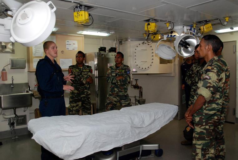 Keywords: USS Green Bay 121011-N-BB534-402.jpg en Hospital Corpsman 2nd Class Richard Utley gives a tour of the medical bay to sailors from Timor-Leste aboard amphibious transport dock ship USS Green Bay LPD 20 Green Bay is currently participating in Exercise Crocodilo 2012 a multilateral exercise that promotes partnership through community service and training with the Timor-Leste Defense Force F-FDTL U S Navy Photo by Mass Communication Specialist 1st Class SW/AW Elizabeth Merriam 2012-10-11 Petty Officer 2nd Class Elizabeth Merriam https //www dvidshub net/image/721943 121011-N-BB534-402 2012-10-14 09 00 BANDA SEA PD-USGov-Military-Navy USS Green Bay LPD-20 Images from DoD uploaded by Fæ |
