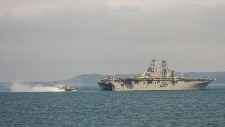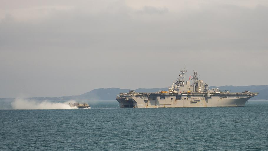 | Keywords: USS Green Bay operations 150402-N-KE519-025.jpg en 150402-N-KE519-025 WATERS EAST OF THE KOREAN PENINSULA April 2 2015 - A landing craft air cushion LCAC enters the well deck of the amphibious assault ship USS Bonhomme Richard as seen from the amphibious transport dock ship USS Green Bay LPD 20 Green Bay is part of the Bonhomme Richard Amphibious Ready Group ARG and along with the embarked 31st Marine Expeditionary Unit MEU is currently underway in the U S 7th Fleet Area of Responsibility U S Navy photo by Mass Communication Specialist 3rd Class Edward Guttierrez III/Released 2015-04-02 Petty Officer 3rd Class Edward Guttierrez III https //www dvidshub net/image/1856904 150402-N-KE519-025 2015-04-04 01 53 USS GREEN BAY WATERS TO THE EAST OF THE KOREAN AT SEA PD-USGov-Military-Navy 31st Marine Expeditionary Unit USS Bonhomme Richard LHD-6 USS Green Bay LPD-20 Images from DoD uploaded by Fæ |