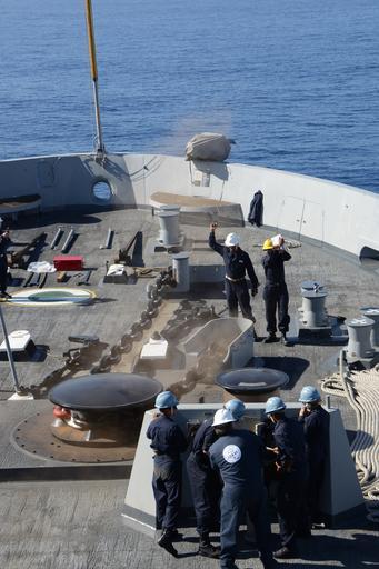 | Keywords: USS Green Bay prepares for INSURV 141028-N-BB534-099.jpg en Sailors perform an anchor drop aboard amphibious transport dock ship USS Green Bay LPD 20 as part of Navy Shipboard Inspection Survey INSURV preparations Green Bay is currently underway in preparation for forward deployment to Sasebo Japan early next year U S Navy photo by Mass Communication Specialist 1st Class Elizabeth Merriam/Released 2014-10-28 Petty Officer 1st Class Elizabeth Merriam https //www dvidshub net/image/1635492 141028-N-BB534-099 2014-10-29 13 26 USS GREEN BAY AT SEA PD-USGov-Military-Navy USS Green Bay LPD-20 Images from DoD uploaded by Fæ |
