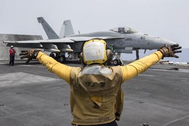 | Keywords: USS Harry S. Truman conducts flight operations. (26832291634).jpg MEDITERRANEAN SEA June 3 2016 Aviation Boatswain's Mate Handling 3rd Class Raimon Hubbard directs an F/A-18E Super Hornet assigned to the Fist of the Fleet of Strike Fighter Squadron VFA 25 on the flight deck of aircraft carrier USS Harry S Truman CVN 75 Harry S Truman Carrier Strike Group is deployed in support of Operation Inherent Resolve maritime security operations and theater security cooperation efforts in the U S 6th Fleet area of operations U S Navy photo by Mass Communication Specialist 3rd Class Anthony Flynn/Released 160603-N-PE636-070 Join the conversation http //www navy mil/viewGallery asp www navy mil/viewGallery asp http //www facebook com/USNavy www facebook com/USNavy http //www twitter com/USNavy www twitter com/USNavy http //navylive dodlive mil navylive dodlive mil http //pinterest com pinterest com https //plus google com plus google com https //www flickr com/photos/usnavy/26832291634/ USS Harry S Truman conducts flight operations 2016-06-03 10 01 https //www flickr com/people/56594044 N06 Official U S Navy Page from United States of America Attribution License IPTC Caption-Abstract U S Navy photo PD-USGov-Military-Navy Official U S Navy Imagery https //flickr com/photos/56594044 N06/26832291634 2016-06-03 20 31 08 cc-by-2 0 160603-N-PE636-070 Navy Photographs taken on 2016-06-03 Strike Fighter Squadron 25 United States Navy Taken with Nikon D750 USS Harry S Truman CVN-75 flight deck Operation Inherent Resolve F/A-18E Super Hornet on flight decks F/A-18 Hornet aircraft carrier launches Files from the U S Navy Flickr stream |