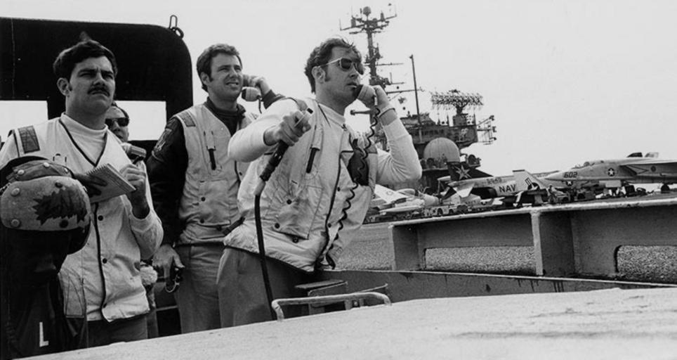 | Keywords: USS Independence (CVA-62), Landing Signal Officers.jpg U S Navy Lieutenant Michael F Jordan center Landing Signal Officer of Attack Carrier Air Wing Seven CVW-7 and Lt Mike Curtain VF 102 LSO controlling and two other landing signal personnel man their stations during aircraft recovery on board the carrier USS Independence CVA-62 The carrier was operating in the Mediterranean Sea In the background three of CVW-7's aircraft are visible A McDonnellDouglas F-4J Phantom II BuNo 155545 of fighter squadron VF-33 Tarsiers a North American RA-5C Vigilante of reconnaissance squadron RVAH-9 Hoot Owls and a Grumman A-6E Intruder of VA-65 Tigers http //www history navy mil/photos/images/h97000/h97719c htm Naval Historical Center photo NH 97719 2nd source http //www navsource org/archives/02/026225 jpg 1974 PH1 Donald Grantham US Navy All information on this site is in the public domain and may be distributed or copied unless otherwise specified Use of appropriate byline/photo/image credits is requested PD-USGov-Military-Navy Aboard USS Independence CV-62 Sailors from the United States Navy Aircraft carrier air operations Fighter Squadron 33 United States Navy Attack Squadron 65 United States Navy Landing Signal Officer |