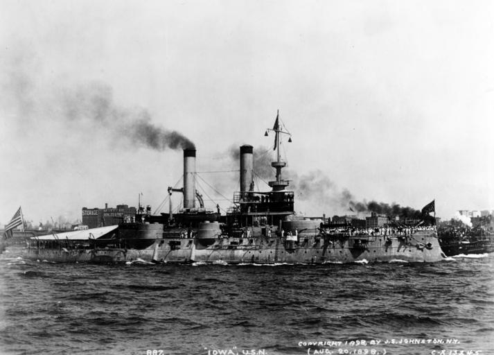 | Keywords: uss iowa ussiowa spanish-american war spanishamericanwar blackandwhite monochrome outdoor black and white NH 63500: USS Iowa (Battleship # 4) Underway off New York City during the Spanish-American War Victory Fleet Review, 20 August 1898. U.S. Naval History and Heritage Command Photograph. (2016/05/16). NH 63500: USS Iowa (Battleship # 4) Underway off New York City during the Spanish-American War Victory Fleet Review, 20 August 1898. U.S. Naval History and Heritage Command Photograph. (2016/05/16). |