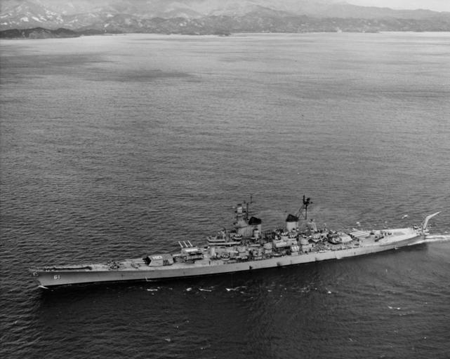 | Keywords: USS Iowa off the Korean Coast, May 1952.jpg  en The U S Navy battleship USS Iowa BB-61 off the Korean coast during a bombardment mission with her second 16 /50 gun turret pointing at the shore 30 May 1952 Official U S Navy photo http //www history navy mil/our-collections/photography/numerical-list-of-images/nhhc-series/nh-series/NH-44000/NH-44540 html NH 44540 from the U S Navy http //www history navy mil Naval History and Heritage Command U S Navy 1952-05-30 PD-USGov-Military-Navy USS Iowa BB-61 Korean War in 1952 |