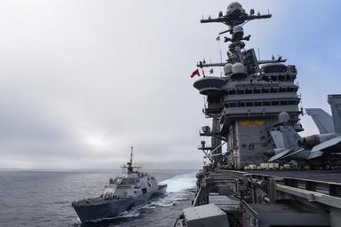 Keywords: USS John C. Stennis operations 150428-N-GZ947-028.jpg en 150428-N-GZ947-028 PACIFIC OCEAN - USS Freedom comes alongside USS John C Stennis during a group sail exercise U S Navy ships are underway conducting an Independent Deployer Certification Exercise off the coast of Southern California The exercise provides a multi-ship environment to train and certify independent deployers in surface warfare air defense maritime-interception operations command and control/information warfare command control computers and combat systems intelligence and mine warfare 2015-04-28 April 28 2015 https //www dvidshub net/image/1906946 150428-N-GZ947-028 2015-04-30 14 30 USS JOHN C STENNIS PACIFIC OCEAN PD-USGov-Military-Navy USS John C Stennis CVN-74 Images from DoD uploaded by Fæ |