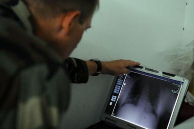 | Keywords: USS Kearsarge Continuing Promise 08 DVIDS124747.jpg en Capt Tim Shope embarked aboard the amphibious assault ship USS Kearsarge reviews X-rays during surgical screenings at the Arima District Health Facility as part of the partnership between Continuing Promise 08 and Trinidad-Tobago Kearsarge is the primary platform for the Caribbean phase of the humanitarian/civic assistance mission CP 08 an equal-partnership mission involving the United States Canada the Netherlands Brazil Nicaragua Colombia Dominican Republic Trinidad and Tobago and Guyana 2008-10-25 https //www dvidshub net/image/124747 081025-N-+++++-075 2008-10-27 18 18 ARIMA TT PD-USGov-Military-Navy USS Kearsarge LHD-3 Images from DoD uploaded by Fæ |