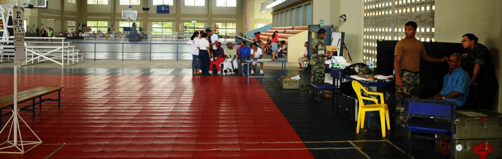 | Keywords: USS Kearsarge personnel treat Dominican citizens at sports complex in Sabana Grande DVIDS123075.jpg en Dominicans wait patiently for their turn to be screened by eye doctors at a sports complex in Sabana Grande The medical staff embarked aboard the amphibious assault ship USS Kearsarge came as part of Continuing Promise 2008 Kearsarge is the primary platform for the Caribbean phase of the humanitarian assistance mission Continuing Promise 2008 an equal-partnership mission involving the United States Canada the Netherlands Brazil France Nicaragua Colombia Dominican Republic Trinidad and Tobago and Guyana 2008-10-15 https //www dvidshub net/image/123075 081015-N-+++++-185 2008-10-19 06 18 SABANA GRANDE DO PD-USGov-Military-Navy USS Kearsarge LHD-3 Images from DoD uploaded by Fæ |