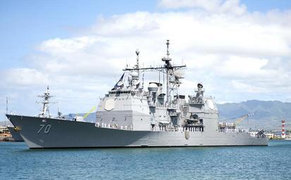 Keywords: USS Lake Erie returns to Joint Base Pearl Harbor-Hickam 140616-N-WF272-030.jpg en The guided-missile cruiser USS Lake Erie CG 70 returns to Joint Base Pearl Harbor-Hickam from a four-month deployment to the western Pacific Lake Erie is expected to replace the guided-missile destroyer USS John Paul Jones DDG 53 this summer as a rotational ballistic missile defense deployer from San Diego John Paul Jones will replace Lake Erie in Hawaii as the nation's ballistic missile defense test ship U S Navy photo by Mass Communication Specialist 2nd Class Diana Quinlan/Released 2014-06-16 Petty Officer 3rd Class Diana Quinlan https //www dvidshub net/image/1404917 140616-N-WF272-030 2014-06-17 23 08 PEARL HARBOR HI US PD-USGov-Military-Navy 2014 in Pearl Harbor USS Lake Erie CG-70 at Pearl Harbor USS Lake Erie CG-70 Images from DoD uploaded by Fæ