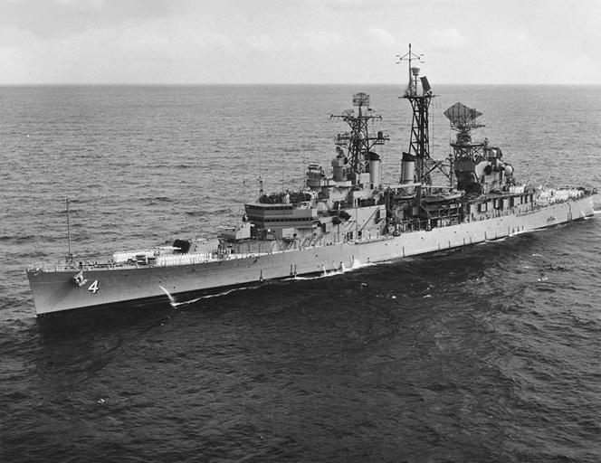 | Keywords: USS Little Rock (CLG-4) underway c Nov 1960.jpg The U S Navy guided missile cruiser USS Little Rock CLG-4 underway at sea with her crew paraded on deck circa November 1960 <br> The original caption released with this photograph on 8 November 1960 reads USS Little Rock Returns to Philadelphia ; The U S S Little Rock CLG-4 returns to Philadelphia Friday Nov 11 after a successful two-month training cruise in the Caribbean the Navy announced today ; The powerful TALOS missile ship and her 1100 man crew will arrive at the Philadelphia Naval Shipyard about 2 p m ; Little Rock will be in the yard for a holiday leave period lasting nearly two months In January the ship departs for Norfolk Va for Atlantic Fleet Exercises Official U S Navy photograph http //www history navy mil/photos/images/h98000/h98950c htm NH 98950 ca 1960-11 USN PD-USGov-Military-Navy USS Little Rock CLG-4 AN/SPS-2 |