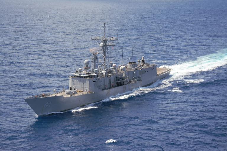 Keywords: USS McClusky (FFG-41) at sea in August 2014.JPG en The U S Navy frigate USS McClusky FFG-41 underway during Operation Martillo in the U S 4th Fleet area of responsibility in the Pacific Ocean The exercise is a U S European and Western Hemisphere partner nation effort launched in January 2012 targeting illicit trafficking routes in coastal waters along the Central American isthmus 2014-08-29 140829-N-AW702-002 Navy http //www navy mil/view_image asp id 183732 U S Navy photo by Mass Communication Specialist 1st Class Jacob Sippel PD-USGov-Military-Navy USS McClusky FFG-41 Operation Martillo |