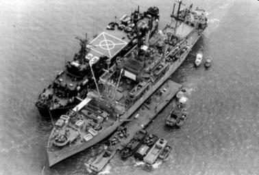 Keywords: USS Montrose (LPA-212).jpg en USS Montrose APA-212 anchored at Vung Tau South Vietnam alongside the accommodation ship USS Benewah APB-35 in May 1967 Among the craft alongside the pontoon are an LCM 6 and a riverine troop carrier adopted from an LCM 6 http //www navsource org/archives/10/03/03212 htm US Navy photo from US Amphibious Ships and Craft by Norman Friedman 1967-05 Cargo ships of the United States Navy PD-USGov-Military-Navy |