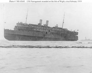 | Keywords: USS Narragansett (SP 2196).jpg en USS Narragansett SP-2196 aground on the Isle of Wight circa 1 February 1919 She was stranded while en route to Southampton England during post-World War I transport operations In the distance is the British troopship Empress Queen which was also aground http //www navsource org/archives/12/172196 htm US Navy Photo NH 45640 1919-02-01 PD-USGov-Military-Navy Passenger ships of the United States Ships built at Harlan Hollingsworth Wilmington Ships built in 1913 Shipwrecks in the English Channel Shipwrecks in the United Kingdom Steamships of the United States Water transport on the Isle of Wight World War I ships of the United States World War I troop ships |
