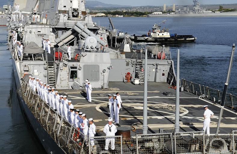 Keywords: USS Paul Hamilton heads out on deployment DVIDS345126.jpg en Sailors assigned to the guided-missile destroyer USS Paul Hamilton man the rails as the ship departs Joint Base Pearl Harbor-Hickam for an independent deployment to the Middle East and western Pacific Ocean Paul Hamilton is deploying under the Middle Pacific Surface Combatant deployment concept in which Hawaii-based ships deploy to support operations in the U S 5th and 7th Fleet areas of responsibility 2010-11-30 Petty Officer 2nd Class Mark Logico https //www dvidshub net/image/345126 101130-N-+++++-012 2010-12-01 17 36 PEARL HARBOR HI US PD-USGov-Military-Navy 2010 in Pearl Harbor USS Paul Hamilton DDG-60 at Pearl Harbor Images from DoD uploaded by Fæ