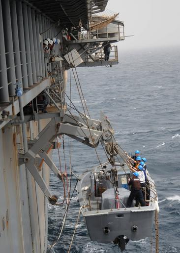 | Keywords: USS Peleliu action DVIDS308081.jpg en Sailors man monkey lines in a landing craft as it is hoisted into its davit during small boat operations aboard the amphibious assault ship USS Peleliu Peleliu is the command platform for the Peleliu Amphibious Ready Group supporting maritime security operations and theater security cooperation efforts in the U S 5th Fleet area of responsibility 2010-07-28 Seaman Ian M Campbell https //www dvidshub net/image/308081 100728-N-+++++-164 2010-08-09 17 51 USS PELELIU AT SEA PD-USGov-Military-Navy USS Peleliu LHA-5 Images from DoD uploaded by Fæ |