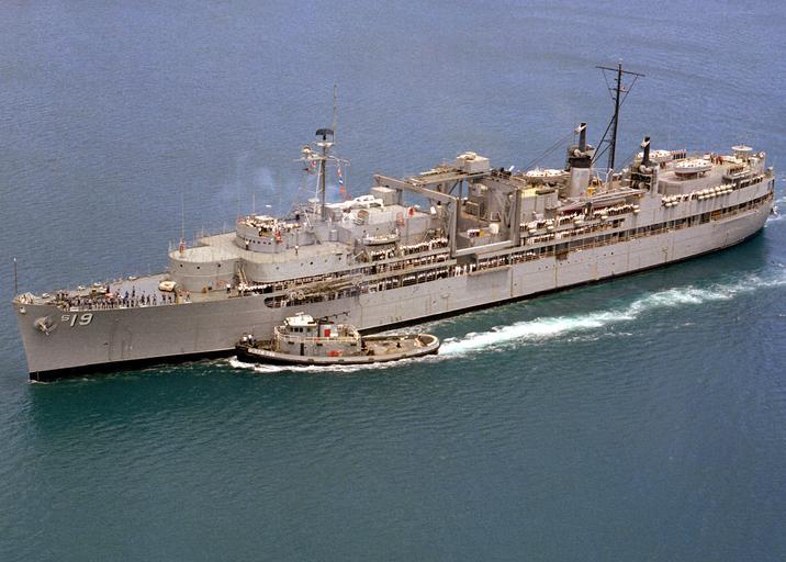 | Keywords: USS Proteus AS-19 1980.jpeg en The large harbor tug USS Saco YTB-796 maneouvers the U S Navy submarine tender USS Proteus AS-19 into port at the U S Naval Base Guam on 24 May 1980 U S Defenseimagery mil photo VIRIN DN-SC-88-08187 Camera Operator PH2 Kline USN 1980-05-24 USS Proteus AS-19 PD-USGov-Military-Navy |