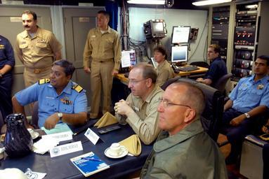Keywords: USS Ronald Reagan (CVN-76) - Malabar 08 debrief - 081022-N-7730P-033.jpg Rear Adm Phil Wisecup and Rear Adm Anil Chopra join their respective strike group commanding officers for the Exercise Malabar 08 debrief 081022-N-7730P-033 INDIAN OCEAN Oct 22 2008 Rear Adm Phil Wisecup commander Carrier Strike Group Seven and Rear Adm Anil Chopra flag officer in command of the Indian navy's western fleet join their respective strike group commanding officers for the Exercise Malabar 08 debrief aboard the Nimitz-class aircraft carrier USS Ronald Reagan CVN 76 The Ronald Reagan Carrier Strike Group is on a scheduled deployment in the 7th Fleet area of responsibility operating in the western Pacific and Indian oceans ” Released Text by U S Navy http //www navy mil/management/photodb/photos/081022-N-7730P-033 jpg 081022-N-7730P-033 Navy http //www navy mil/view_image asp id 65649 2008-10-22 Mass Communication Specialist 3rd Class Gary Prill U S Navy ” PD-USGov-Military-Navy original upload log wikitable date/time username resolution size edit summary ---- 16 44 18 January 2009 User Mattes <a href http //upload wikimedia org/wikipedia/commons/f/f0/Category-USS_Ronald_Reagan_ 28CVN-76 29_-_Malabar_08_debrief_-_081022-N-7730P-033 jpg ><img alt Thumbnail for version as of 16 44 18 January 2009 src http //upload wikimedia org/wikipedia/commons/thumb/f/f0/Category-USS_Ronald_Reagan_ 28CVN-76 29_-_Malabar_08_debrief_-_081022-N-7730P-033 jpg/120px-Category-USS_Ronald_Reagan_ 28CVN-76 29_-_Malabar_08_debrief_-_081022-N-7730P-033 jpg width 120 height 80 border 0 /></a></td><td>3 872×2 592 1 29 MB <nowiki> Rear Adm Phil Wisecup and Rear Adm Anil Chopra join their respective strike group commanding officers for the Exercise Malabar 08 debrief 081022-N-7730P-033 INDIAN OCEAN Oct 22 2008 Rear Adm Phil Wisecup commander Car</nowiki> Guests aboard USS Ronald Reagan CVN-76 Carrier Strike Group Seven Military people on duty Malabar 2008 James P Wisecup Ship interiors Uploads by Mattes from external sources Anil Chopra admiral |