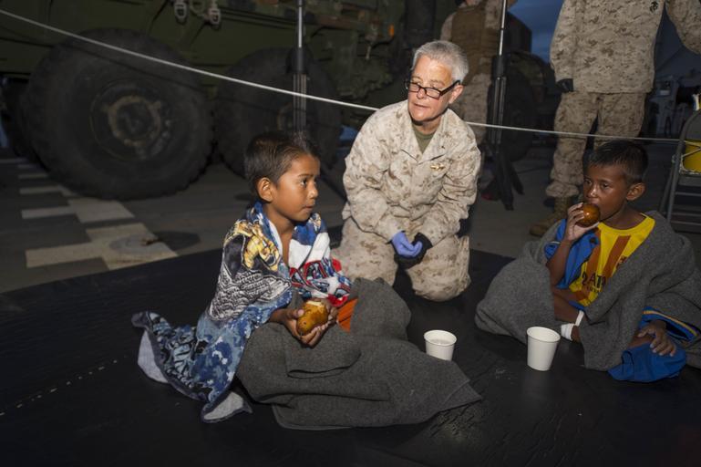 | Keywords: USS Rushmore rescue operations 150610-N-SF984-197.jpg en 150610-N-SF984-197 WATERS NEAR INDONESIA June 10 2015 Chaplain Diane Hampton watches over rescued Indonesian children on the flight deck of Whidbey Island-class amphibious dock landing ship USS Rushmore LSD 47 The Essex Amphibious Ready Group is currently operating in the 7th fleet area of responsibility U S Navy photo by Mass Communication Specialist 3rd Class Chelsea Troy Milburn/Released 2015-06-10 Seaman Chelsea Milburn https //www dvidshub net/image/1997139 150610-N-SF984-197 2015-06-13 01 52 USS RUSHMORE CA SOUTH CHINA SEA PD-USGov-Military-Navy USS Rushmore LSD-47 Images from DoD uploaded by Fæ |