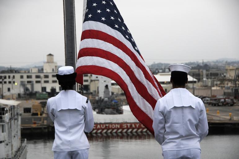 | Keywords: USS San Diego colors 131024-N-LI693-007.jpg en Personnel Specialist 3rd Class Catressa Evans left and Seaman Recruit Anthony Nieves prepare for morning colors aboard the amphibious transport dock ship USS San Diego LPD 22 San Diego homeported in San Diego Calif is conducting basic phase training in preparation for its maiden deployment in 2014 U S Navy photo by Chief Mass Communication Specialist Holly Gray/Released 2013-10-24 Petty Officer 2nd Class Holly Gray https //www dvidshub net/image/1043617 131024-N-LI693-007 2013-10-30 22 12 SAN DIEGO CA US PD-USGov-Military-Navy USS San Diego LPD-22 Images from DoD uploaded by Fæ |