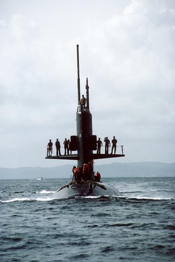 Keywords: USS Scamp (SSN-588) bow on view.jpg Information The nuclear-powered attack submarine USS SCAMP SSN 588 arrives in port for the start of the joint US/South American Exercise UNITAS XXV <br>Location ROOSEVELT ROADS PUERTO RICO PR UNITED STATES OF AMERICA USA Shot 23 Sep 1984 PD-USN UNITAS 25-84 Naval Station Roosevelt Roads Submarine sails USS Scamp SSN-588 |
