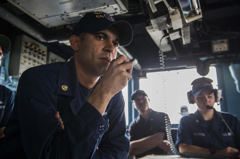 Keywords: USS Shiloh operations 140715-N-TU910-057.jpg en Chief Quartermaster Sam Patel from Los Angeles makes an announcement over the announcement system during a sea and anchor evolution aboard Ticonderoga-class guided-missile cruiser USS Shiloh CG 67 as the ship departs Busan after a 4-day port visit Shiloh is on patrol with the George Washington Carrier Strike Group supporting of security and stability in the Indo-Asia-Pacific region U S Navy photo by Mass Communication Specialist Seaman Abby Rader/Released 2014-07-15 Seaman Abigail Rader https //www dvidshub net/image/1454325 140715-N-TU910-057 2014-07-19 01 31 BUSAN KR PD-USGov-Military-Navy USS Shiloh CG-67 Images from DoD uploaded by Fæ