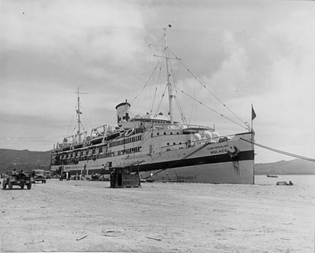 | Keywords: blackandwhite monochrome outdoor black and white 09-5069-33 USS Solace, Iwo Jima, alongside the dock at Guam, while the debarkation of patients proceeds, the crew begins to load supplies for the return trip to Iwo Jima. [Automobiles.][Hospital ships. Transport of sick and wounded.][World War 2. Pacific Theater.][Scene.] Solace (AH-5) Folder 1 09-5069-33 USS Solace, Iwo Jima, alongside the dock at Guam, while the debarkation of patients proceeds, the crew begins to load supplies for the return trip to Iwo Jima. [Automobiles.][Hospital ships. Transport of sick and wounded.][World War 2. Pacific Theater.][Scene.] Solace (AH-5) Folder 1 |