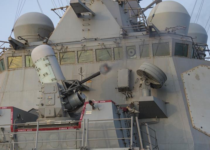 | Keywords: USS STOUT (DDG 55) DEPLOYMENT 2016 160725-N-GP524-583.jpg en 160725-N-GP524-583 ARABIAN GULF July 25 2016 A Phalanx close-in weapons system CIWS is fired aboard the guided-missile destroyer USS Stout DDG 55 Stout deployed as part of the Eisenhower Carrier Strike Group is supporting maritime security operations and theater security cooperation efforts in the U S 5th Fleet area of operations U S Navy photo by Mass Communication Specialist 3rd Class Bill Dodge/Released Unit Navy Media Content Services DVIDS Tags SAR; Search and Rescue; formation; ocean; transit; Bahrain; RAS; USNS Pecos ; GQ; general quarters; Arleigh Burke-class; America; underway; CIWS; 6th Fleet; guided-missile destroyer; Manama ; forward deployed; Memorial Day; USS Stout DDG 55 ; ship; SUEZ CANAL; Navy; COMREL; Sailor; community relations; destroyer; replenishment-at-sea; U S Navy; 5th Fleet; deployment; MC; Stout; USS Stout; DDG 55; Lt Michael Murphy; NMCS; DVIDS Bulk Import; Mass Communication Specialist 3rd Class Bill Dodge; MC3 Bill Dodge; Murph Challenge; ARGONAUT 2016; Sailors giving back 2016-07-25 Petty Officer 3rd Class William Dodge https //www dvidshub net/image/2766489/uss-stout-ddg-55-deployment-2016 160725-N-GP524-583 2016-08-04 00 16 PERSIAN GULF PD-USGov-Military-Navy Manama USS Stout DDG-55 Images from DoD uploaded by Fæ |