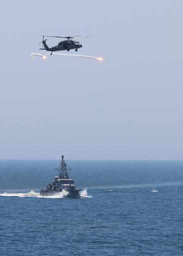 | Keywords: USS STOUT (DDG 55) DEPLOYMENT 2016 160811-N-GP524-628.jpg en 160811-N-GP524-628 ARABIAN GULF Aug 11 2016 An MH-60R Sea Hawk helicopter assigned to the Swamp Foxes of Helicopter Sea Maritime Squadron HSM 74 shoots flares while flying over the Cyclone-class coastal patrol ship USS Sirocco PC 6 during an exercise with the guided-missile destroyer USS Stout DDG 55 Stout deployed as part of the Eisenhower Carrier Strike Group is supporting maritime security operations and theater security cooperation efforts in the U S 5th Fleet area of operations U S Navy photo by Mass Communication Specialist 3rd Class Bill Dodge Unit Navy Media Content Services DVIDS Tags SAR; Search and Rescue; formation; ocean; transit; Bahrain; RAS; USNS Pecos ; GQ; general quarters; Arleigh Burke-class; America; underway; CIWS; 6th Fleet; guided-missile destroyer; Manama ; forward deployed; Memorial Day; USS Stout DDG 55 ; ship; SUEZ CANAL; Navy; COMREL; Sailor; community relations; destroyer; replenishment-at-sea; U S Navy; 5th Fleet; deployment; MC; Stout; USS Stout; DDG 55; Lt Michael Murphy; NMCS; DVIDS Bulk Import; Mass Communication Specialist 3rd Class Bill Dodge; MC3 Bill Dodge; Murph Challenge; ARGONAUT 2016; Sailors giving back 2015-08-11 Petty Officer 3rd Class William Dodge https //www dvidshub net/image/2797344/uss-stout-ddg-55-deployment-2016 160811-N-GP524-628 2016-08-17 00 07 PERSIAN GULF PD-USGov-Military-Navy Manama USS Stout DDG-55 Images from DoD uploaded by Fæ |