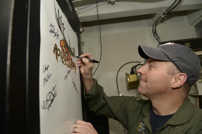 MAKE A MEME View Large Image Theodore Roosevelt operations 150529-N-ZF498-014.jpg en 150529-N-ZF498-014 U S 5TH FLEET AREA OF OPERATIONS - Capt Jeff Craig executive officer of the aircraft carrier USS Theodore Roosevelt signs a poster for Rough Rider Radio The ...