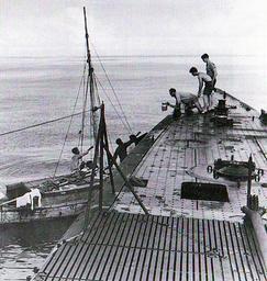 Keywords: USS Wahoo and refugees.jpg en Crew members form Wahoo give food water and cigarettes to Malaysian refugees found adrift far from land They were also supplied with maps to the nearest port Don Keith Undersea Warrior The World War II Story of Mush Morton and the USS Wahoo US Navy photo 1943-01-25 The picture was scanned from the book however this is original work of US Navy officer during his war world two duty and belongs to the US Navy USS Wahoo SS-238 Refugees of World War II PD-USGov-Military-Navy |