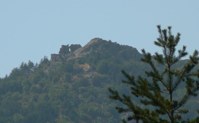 Keywords: Ustra-roadview.JPG Изглед към к епостта Уст а от автомобилния път след с Уст ен Родопите Бълга ия Ustra fortress as seen from the car road Rhodope Mountains Bulgaria Own 2007-08-18 Vassia Atanassova - Spiritia Ustra