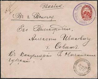| Keywords: Ustsysolk zemstvo Sh 6.jpg ru Штемпельный конве т Устьсысольского уезда 6 по каталогу Шмидта азме 149х120мм отп авлен из Устьсысольского уезда по земской почте до г Устьсысольск 26 9 1889 г далее по госуда ственной почте в г Вологду en Ustsysolsk Uyezd Zemstvo Cover 2 kopecks Russia http //www philatelist ru/category/ustsysolsk/ Cropped - Leonid 2 1889-09-26 ru Russian Wikipedia Vikiped PD-old Zemstvo stamps of Vologda Governorate Postal stationery of Russia Cc-zero | ||||